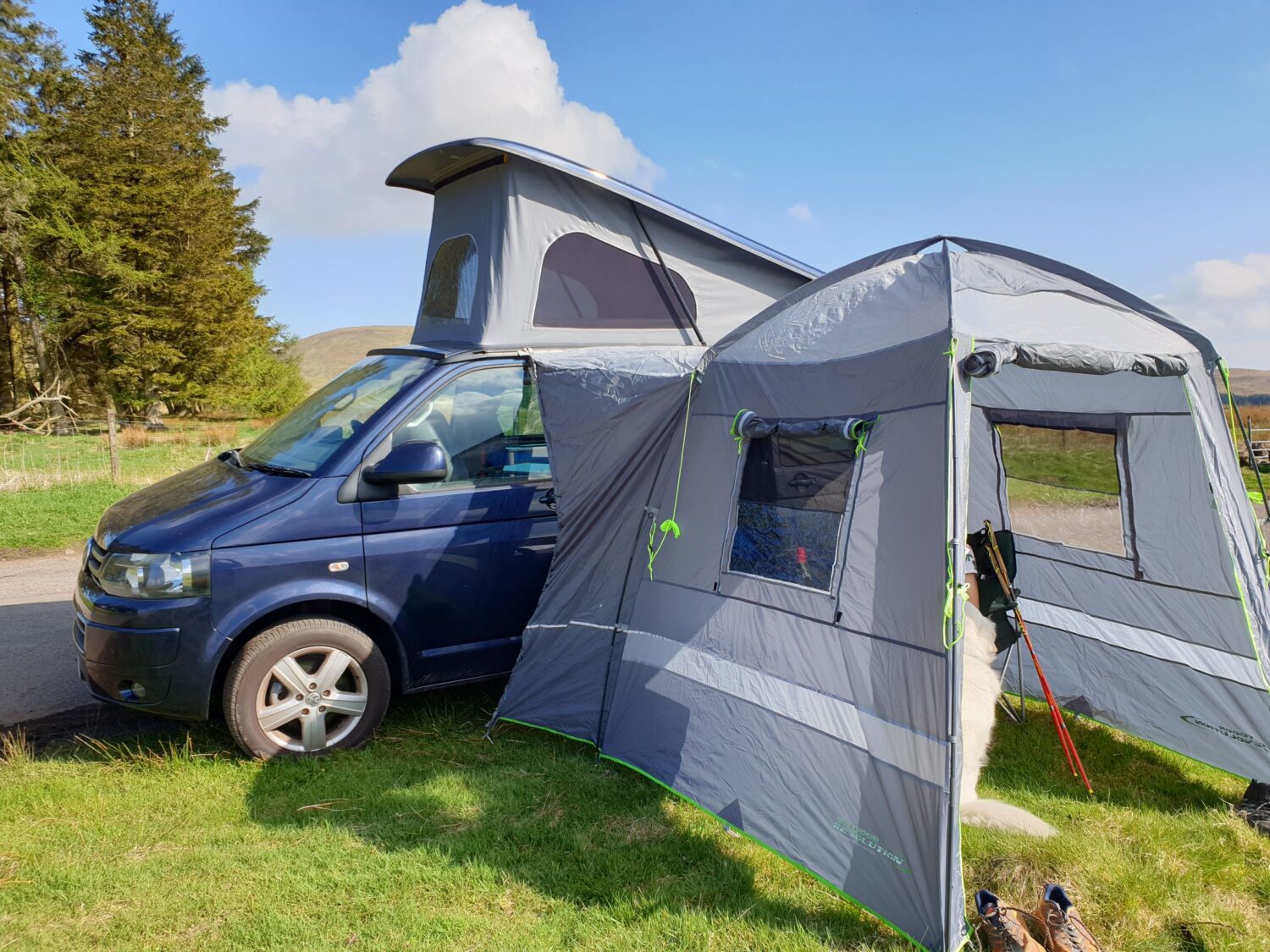 Our Transporter sleeps 2 adults in the pop up bed, and 2 adults in the rock & roll bed within the van